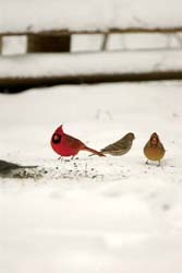 Cardinals flocking; they're usually the first and last birds to be seen at feeders.